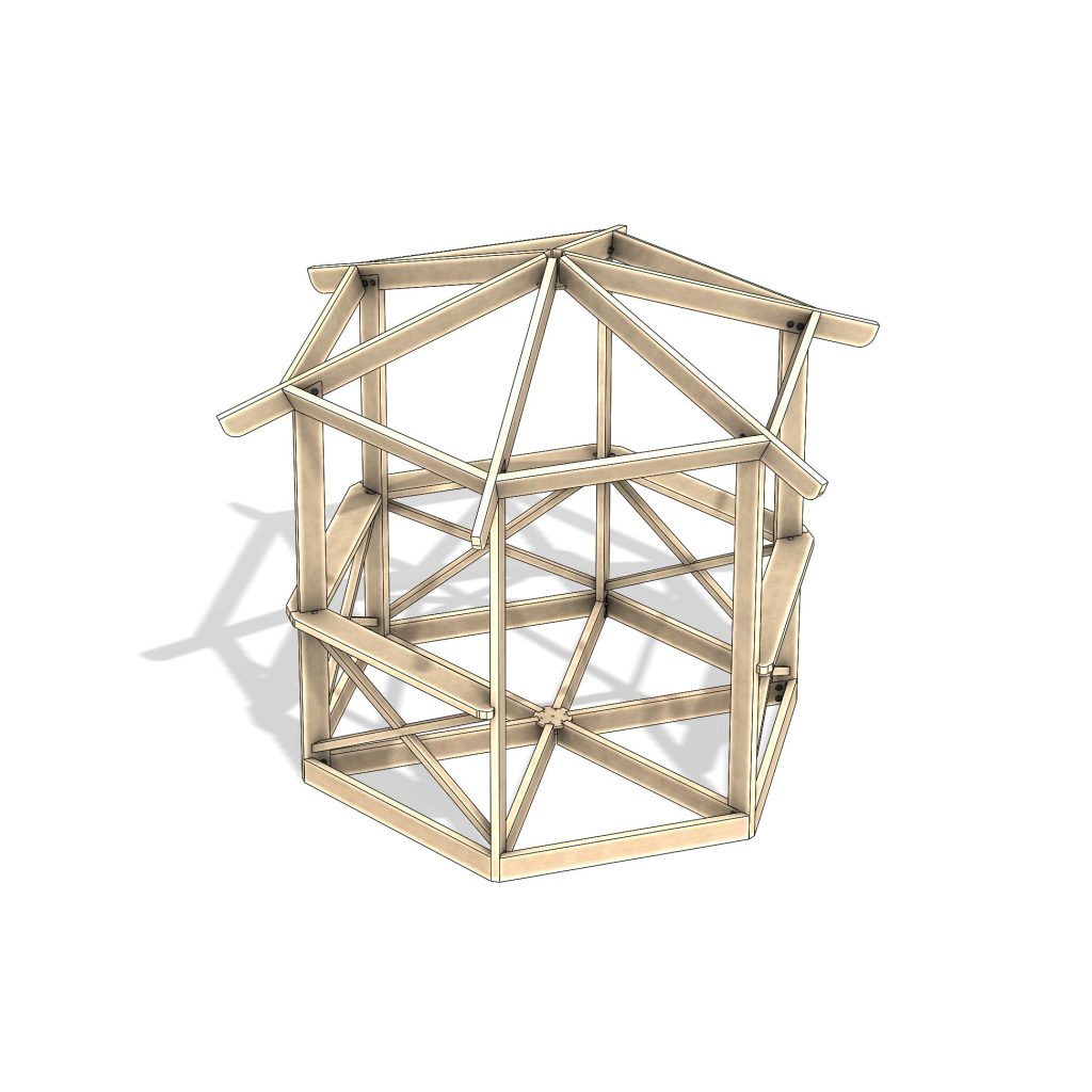 Puulukuühendustega karkass. Konstruktsioon on patenteeritud.